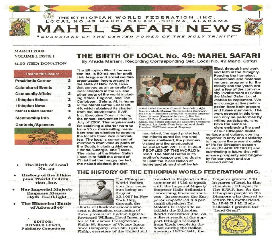 The Ethiopian World Federation, Inc. Local No. 49 Mahel Safari Selma, Alabama |