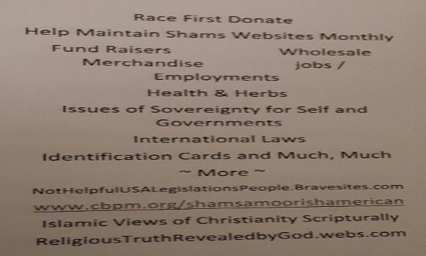 Contact: Shamsuddin A. AbdulHakim Bey Shams. Sovereign Indigenous Nuwaubian Nuwaupian Government CBPM's 1,719th Member sites.google.com/site/wholistic healthandemployment Donate Phone: 347-780-4743 605-313-5735 Code: 232119; Host: 4619 605-313-4102 playback for the conference calls Email Address: Brothers : shamsuddinabdulhakimbey@gmail.com Sisters : shams777moorindigenousgov@gmail.com www.blackplanet.com/Shams777Bey99 Web: www.cbpm.org/ shamsamoorishamerican www.paypal.me/111shams Royalhealthgoddessqueens.jigsy.com www.Panafricanalliance.com/ref/12/ religioustruthrevealedbygod.webs.com NotHelpfulUSALegislationsPeople www.google.com or www.youtube.com sites.google.com/site/ anoteofunlawandusconstitutions Shams Government Registry: Email: Shamsgeneralcensusgov@gmail.com |