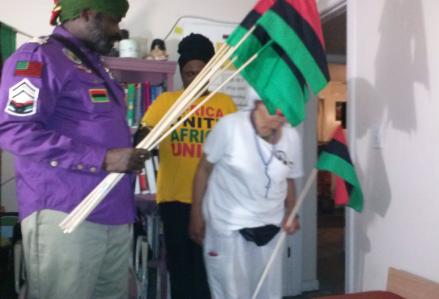 | UNIA-ACL Division 421 in Atlanta, Division 178 from Philadelphia, and Division 407 from Detroit working together all night long at the UNIA/CBPM Office in Atlanta to get ready for the Marcus Garvey / African Independence Day Parade in the morning of August 31st, 2012. |